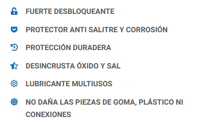 Penetrea en los mecanismos poco a poco ,movilizando el óxido y las incrustaciones de salitre creando una espesa capa proctectora para asegurar un exepcional efecto de larga duración contra la oxidación , corrosión y picaduras en los metales .