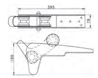 Polea basculante con puente, fabricada de acero inoxidable AISI316. Roldana de nylon.