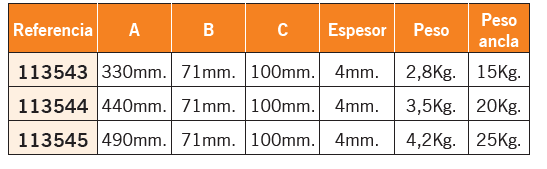 Medidas : Largo(A): 330mm, Ancho(B): 71mm, Alto(C): 100mm,