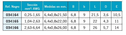 Material aislante: Poliamida (nylon). Voltaje y temperatura máximos de uso: 300v.-105ºC.. Disponible en varios modelos .