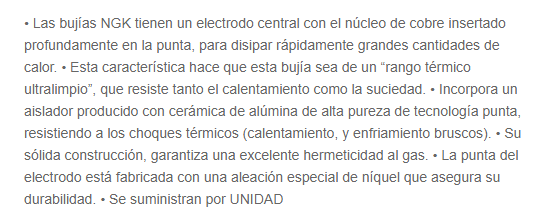 Distancia entre electrodos: 0,7 mm.