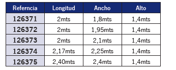 Considerando 2.40 mts de ancho ( la medida entre punto y punto de fijación ) . Esta medida es orientativa puede adaptarse en 10 cm de más o de menos.
